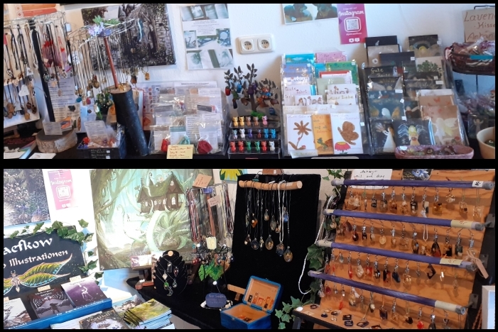 Bei uns gibt es Bilder , Fantasie- Bücher, Figuren, Plastiken, SChmuck aus Epoxidharz , - Stricksachen vor allem für kleine Kinder / Babys,